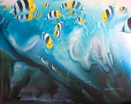 Original oil painting from Stephen Ward part of the abstract aquatic series. It is 60" x 48" gallery wrapped and ready to hang