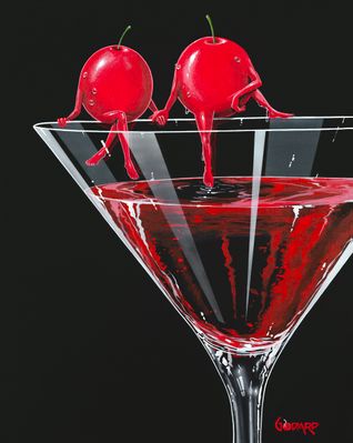 Cosmo In Love by Michael Godard. Limited edition giclee on canvas, signed and numbered and gallery wrapped comes in multiple sizes and editions. Godard is the Rockstar of Art and keeps on bringing it with olives, cherries, grapes, strawberries and coffee beans. Whimsical and Fun. Editions: G-Godard Edition(Small), SN-Signed and Numbered(Large), AP-Artist Proof(1 color enhancement), GP-Grand Proof(3 Color Enhancement)