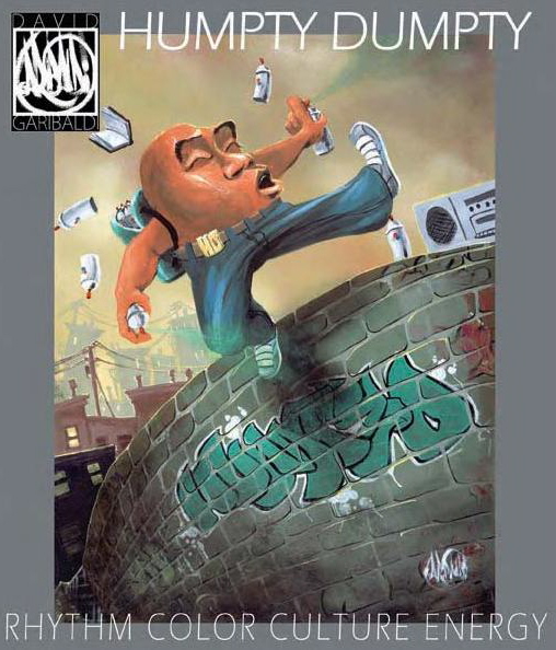 This is one of the series that David Garibaldi did for The Toon Studio of Beverly Hills. Humpty is tagging a wall as he falls off. This takes David back to his art roots as a graffiti artist. The miniature is 12" x 16" and has an edition size of a mere 75 so each one is a collector's item. It is numbered and signed by the artist. The giclee also comes with a certificate of authenticity.