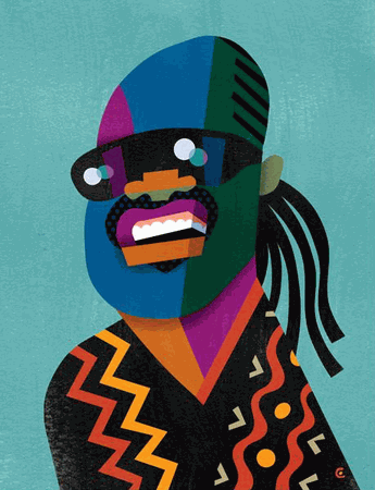 by David Cowles depicting Stevie Wonder. Cowles work has appeared in Entertainment Weekly,